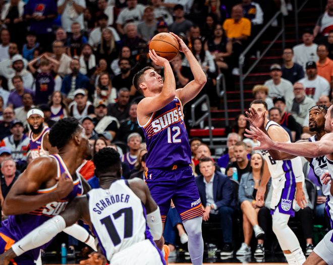 沒想到整個(gè)上半場(chǎng),太陽被壓得喘不過氣。伊戈達(dá)羅和布魯克斯連續(xù)幫助太陽得分,不過德羅贊翻身坐打,施羅德跳投,拉文漂移中投+尤班克斯泰山壓頂補(bǔ)扣,國(guó)王很快反超比分。中段德羅贊繼續(xù)擺歐洲步,拉文躲閃上反籃+蒙克三分,國(guó)王換上威少后,威少先是一個(gè)走步。不過隨后威少就助攻蒙克拋投打進(jìn)。太陽就依靠布克單打維持局面,第一節(jié)國(guó)王29-19太陽,讓人意外的是,布魯克斯第一節(jié)11次出手,完全沒手感,但布克身邊又沒人能吃下更多球權(quán)。第二節(jié)威少干拔三分不中,不過埃利斯內(nèi)外開花,直接打停太陽。