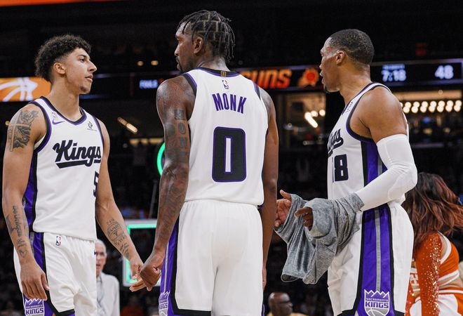 北京時(shí)間10月23日,NBA常規(guī)賽繼續(xù)進(jìn)行,國(guó)王客場(chǎng)挑戰(zhàn)太陽。這場(chǎng)比賽關(guān)注度可能沒那么高,但這也是威少在國(guó)王生涯首秀,此外,太陽在解散三巨頭后,也迎來重建球隊(duì)的新起點(diǎn)。用太陽新主帥奧特的話說,球隊(duì)預(yù)計(jì)新賽季會(huì)制定一個(gè)8-10人的輪轉(zhuǎn)計(jì)劃。壞消息是杰倫格林因?yàn)橥冉顐麆?shì),依舊無法出戰(zhàn),包括接下來的三連客之旅。國(guó)王這邊,薩博尼斯也是腿筋拉傷,和國(guó)王完成5年1.4億合同續(xù)約的穆雷,遭遇拇指受傷,也無法出戰(zhàn)。這樣威少也能獲得更多機(jī)會(huì)。威少和國(guó)王1年360萬合同是無保障的,國(guó)王隨時(shí)可以裁掉。