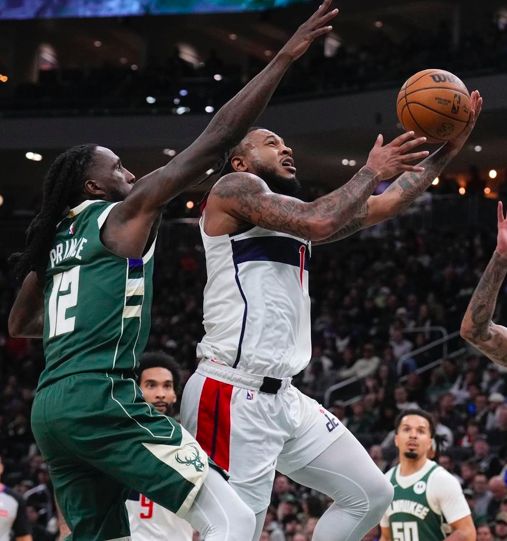 雄鹿這場(chǎng)比賽三分投射很不錯(cuò),全隊(duì)44投18中,命中率40.9%。這當(dāng)中也是有7人命中三分球,其中特倫特命中5記,格林5中3,小波特3中2,替補(bǔ)席上的普林斯4中3,安東尼2中1,而新援特納則是8中2,還需要找找手感。從這一點(diǎn)來(lái)看,雄鹿的陣容搭配還是很合理的,很清楚該在字母哥身邊安排眾多射手。