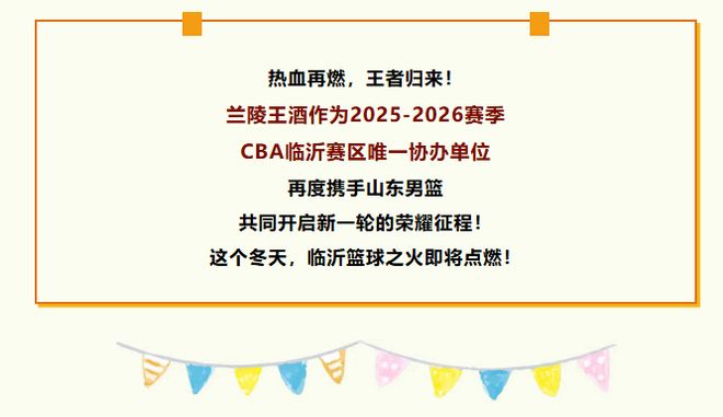 這個冬天,讓我們繼續(xù)以城市之名,為山東而戰(zhàn)!讓蘭陵王酒的醇香繼續(xù)飄蕩在每一個熱血沸騰的賽場,共同書寫屬于山東男籃的新傳奇!