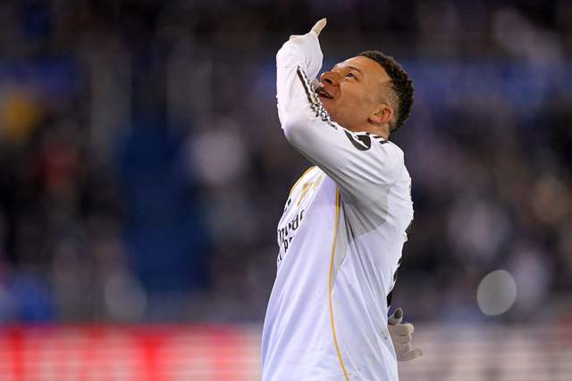 第24分鐘,居萊爾中場(chǎng)斷球,貝林厄姆直傳策動(dòng)反擊,姆巴佩帶球長(zhǎng)驅(qū)直入,內(nèi)切兜射破門,皇馬打破僵局,1-0!姆巴佩本賽季西甲17場(chǎng)17球,在射手榜上遙遙領(lǐng)先。此外姆巴佩2025年為皇馬打進(jìn)56球,距離C羅的隊(duì)史紀(jì)錄還差3球。